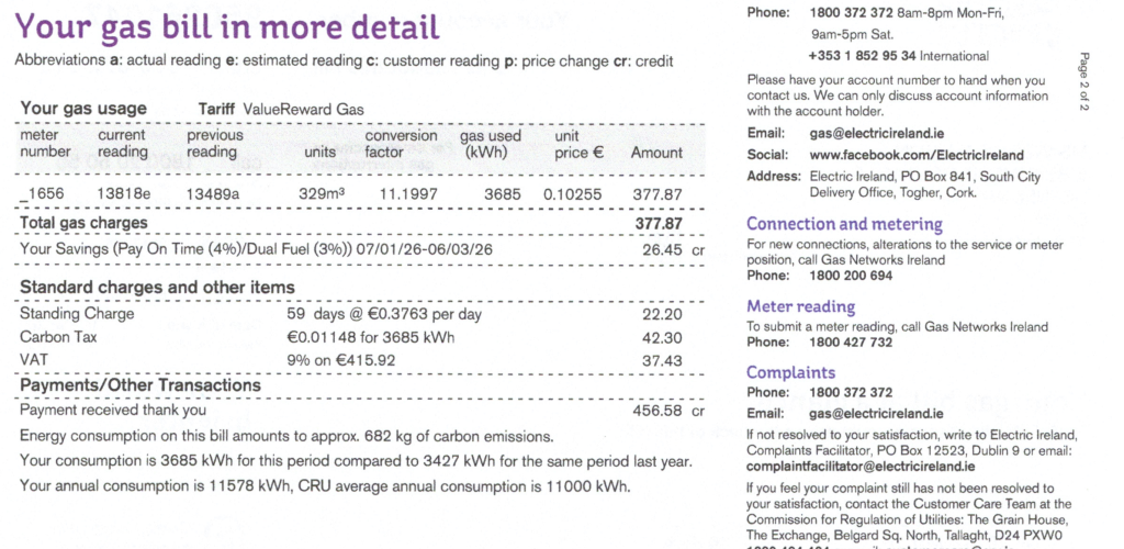 Carbon Tax: €42.30 + 9% VAT = €46.10